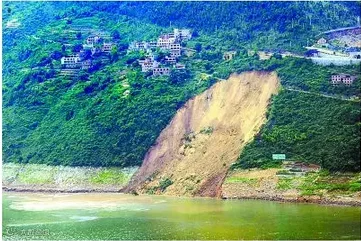 山体滑坡土石直接冲击及产生的巨大涌浪造成船舶、码头设施毁损和人员伤亡;同时,滑坡体滑入江中航道,还会淤高河床或形成堰塞湖从而影响通航安全,甚至造成航运中断。