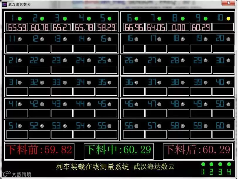 海达数云列车装载在线测量系统在武汉某球团厂的运输车间进行了试运行,试运行期间达到了现场指导装车的设计要求。经过与轨道衡数据对比,误差小于千分之0.02。