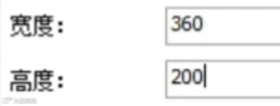 调整它的宽度为360,高度为200,也可根据实际情况进行不同的设置。