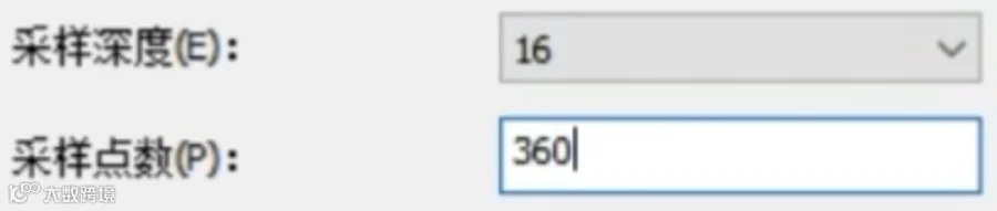 选择通道颜色,根据宽度调整采样点数,现在我的宽度为360,所以我调整采样点数为360,设置采样深度为16。
