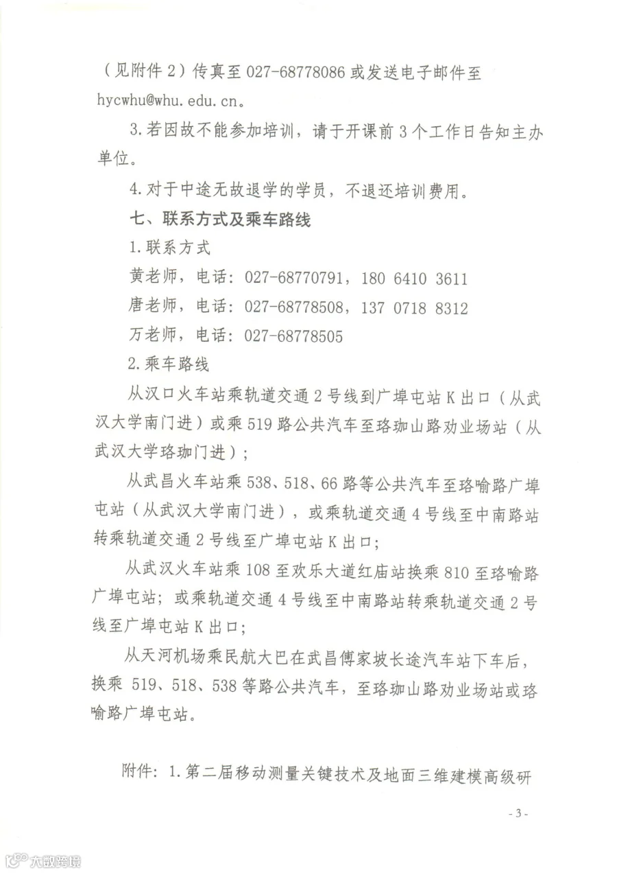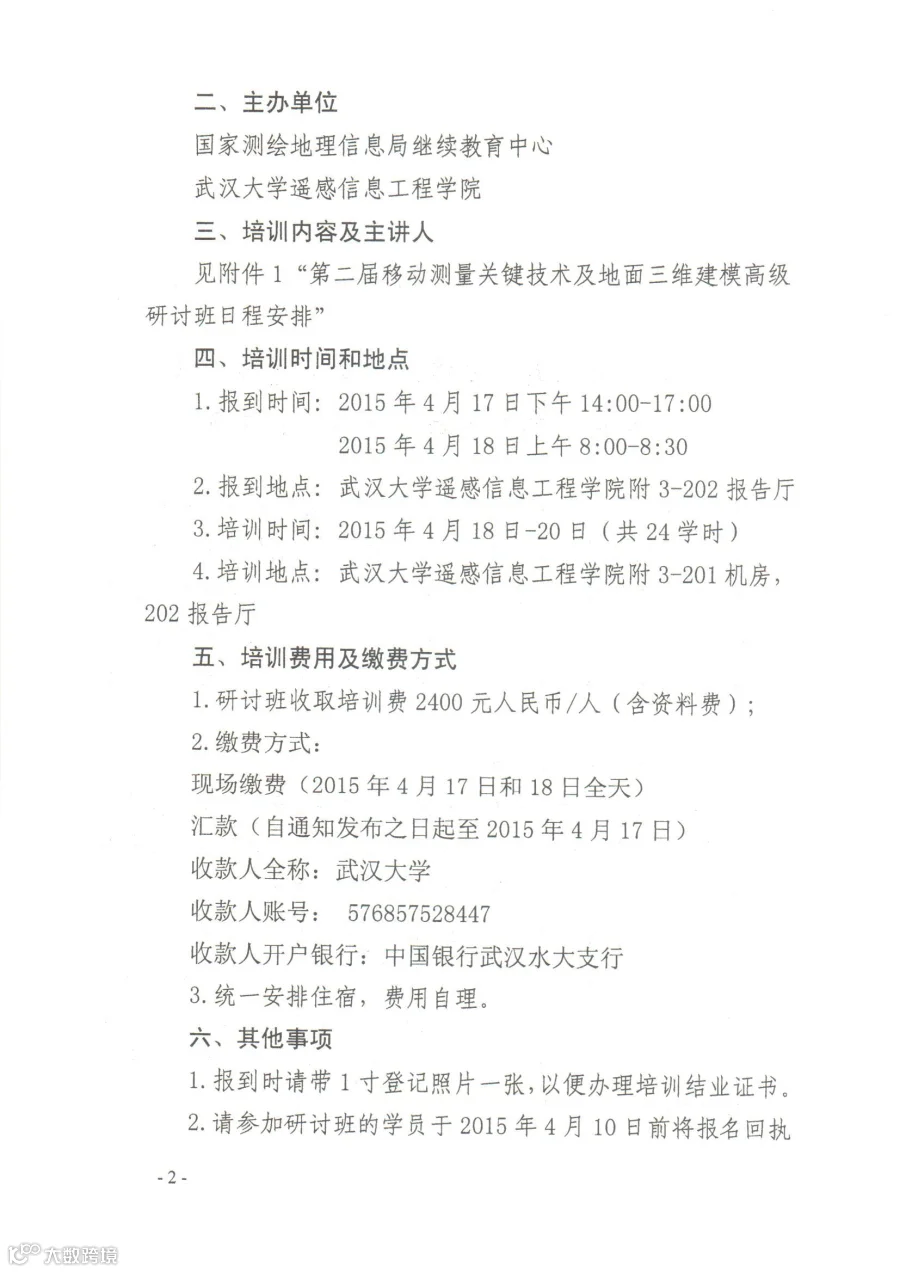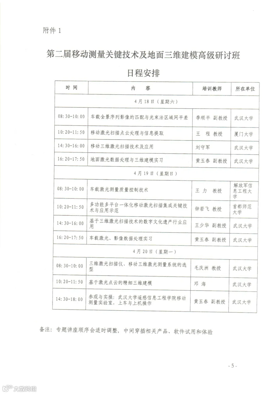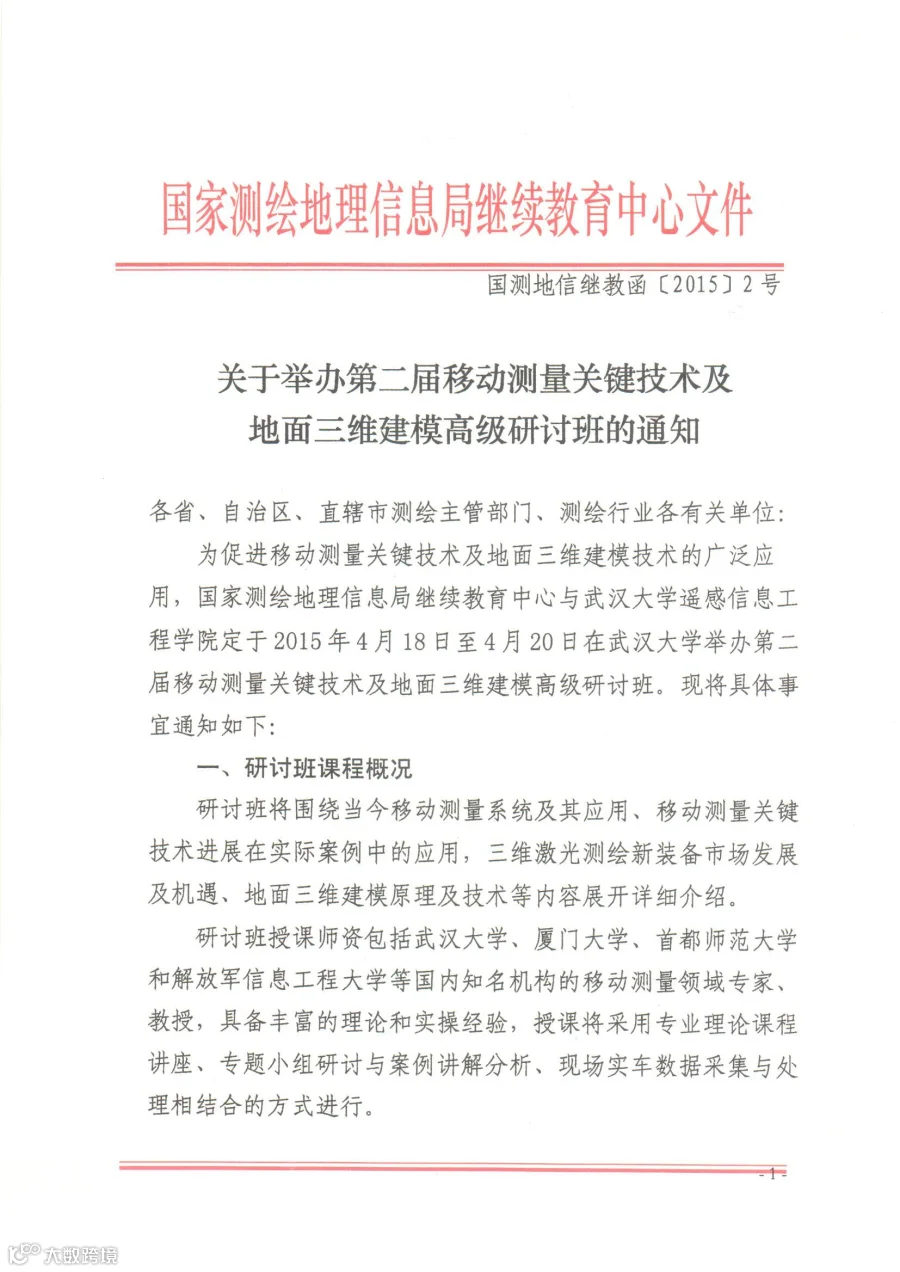 关于武大遥感学院举办第二届移动测量关键技术及地面三维建模高级研讨班的通知