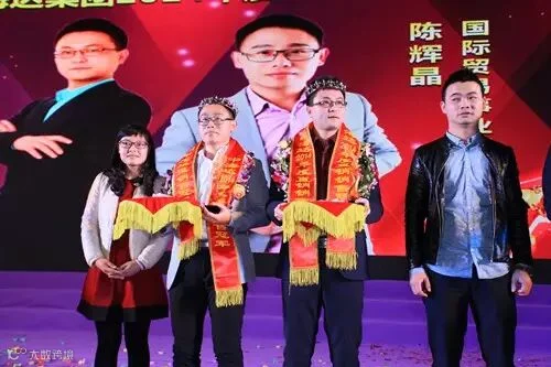 中海达年度销售冠军陈辉晶(左二)、彭献亚(左三)与家属们分享喜悦