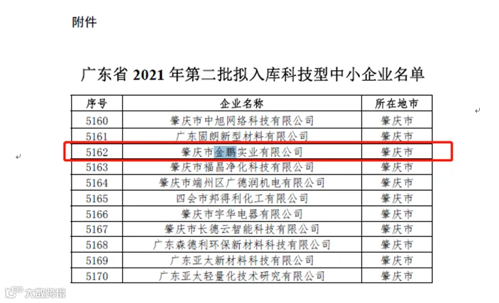 喜讯!热烈祝贺肇庆市金鹏实业有限公司再次获得“国家高新技术企业”认定!|