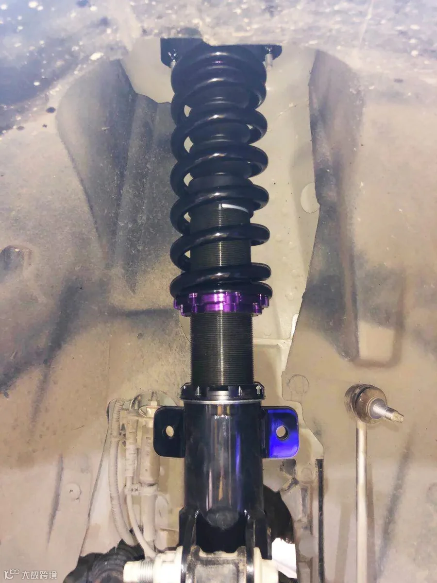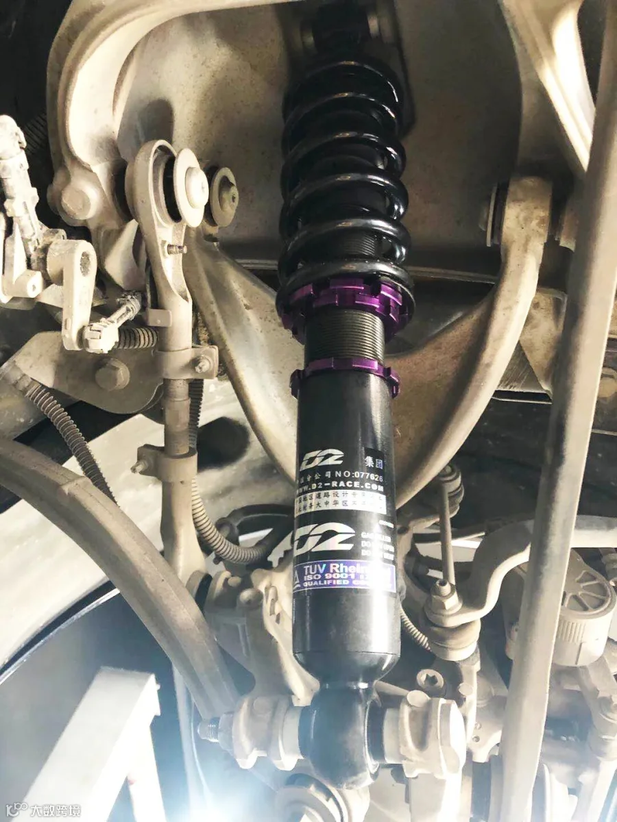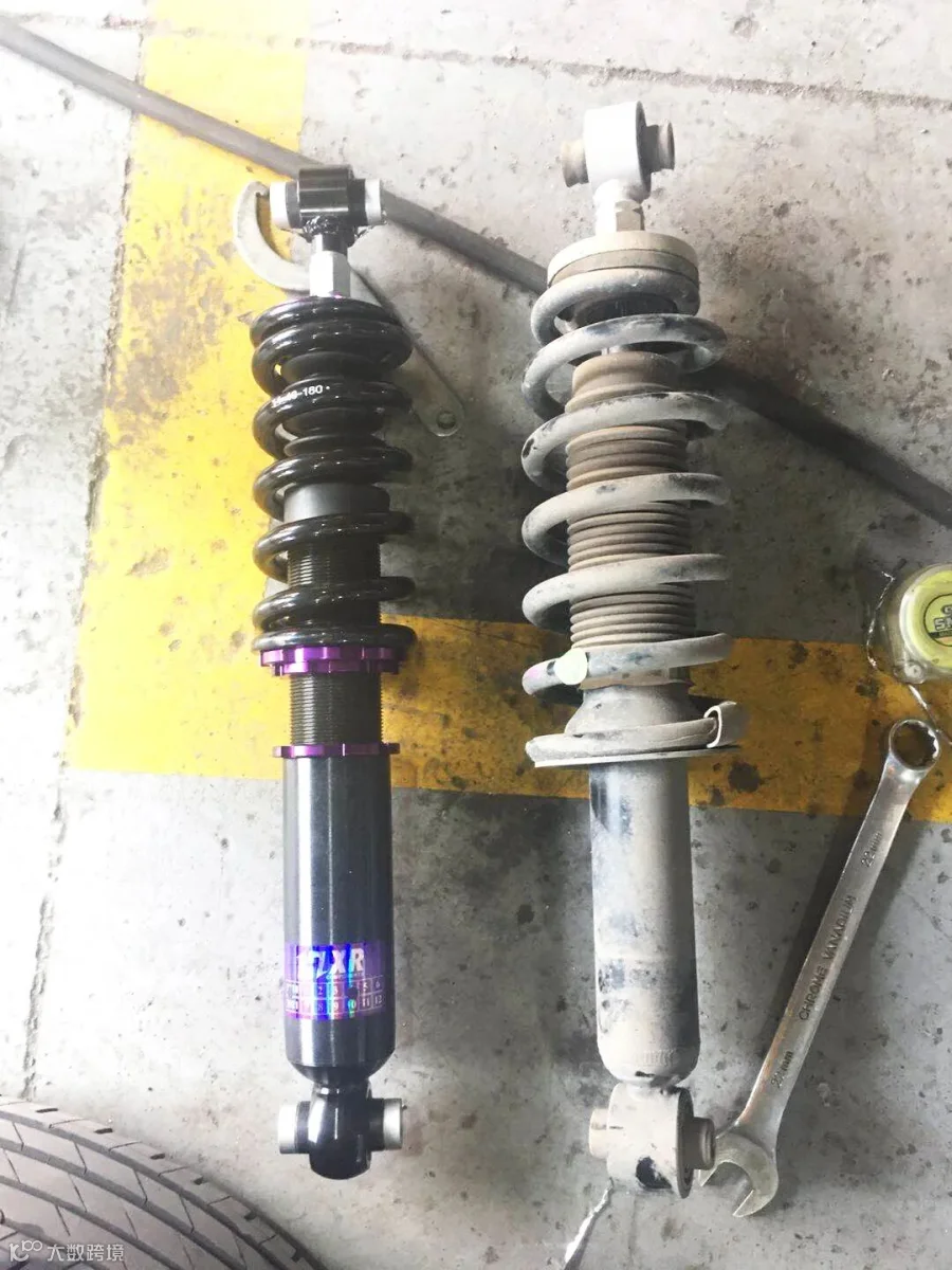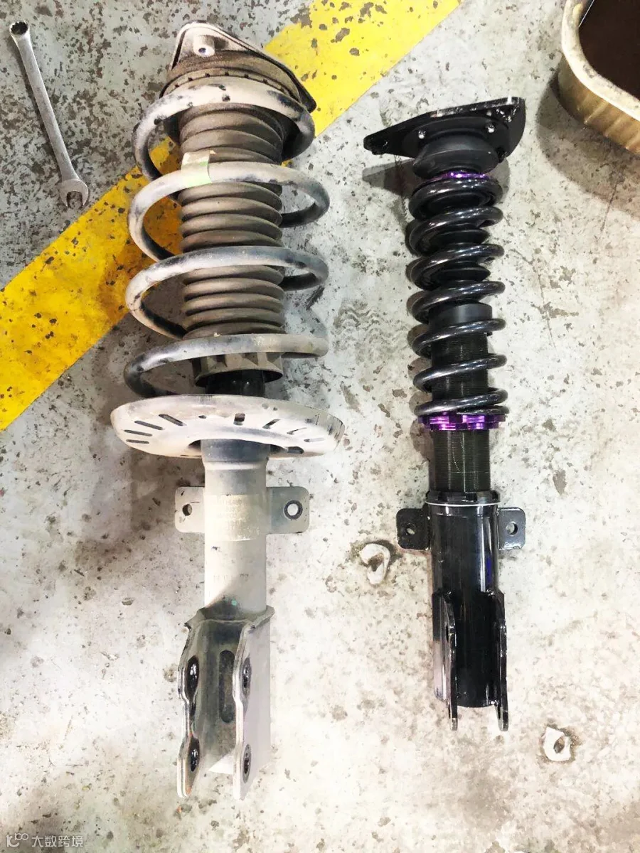 ▲【左边为原厂避震,右边为D2避震安装实况】