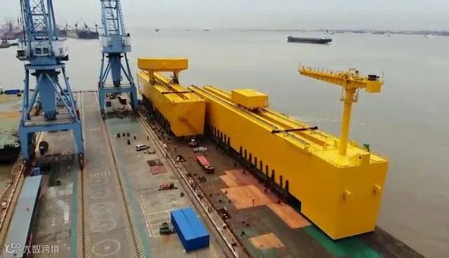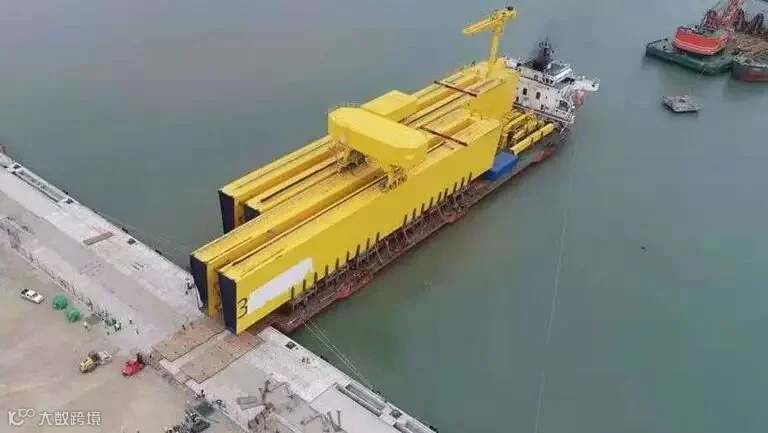其中两段主梁共重3700吨,于长兴岛进行船-船对滚作业。