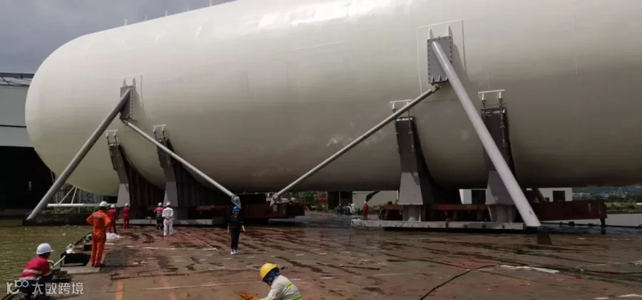 子弹罐(LPG罐体)——半埋入式的高压液化石油气罐体,是南非查里兹湾在建液化石油气加工场地的重要设备。该项目是中山港口由二类港口升级为一类港口的首次出货项目,中山市各级海事相关单位给予了高度重视。
