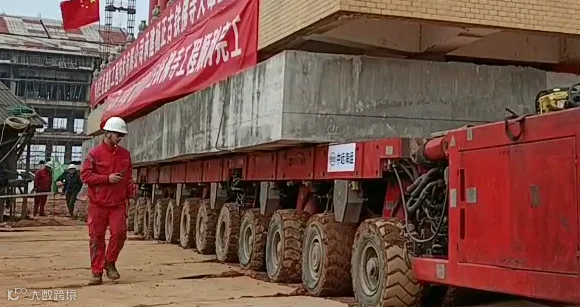 在运输过程中,为确保大殿内部多座佛像及壁画的安全,保证运输的稳定性,现场配备全站仪在各个约定点位测量车组和大殿姿态,及时进行调整;为保证所有车组的同步性,操作团队利用液压油管将多组车串联分区,使模块车顶升同步,运用车辆多转向和自调节模式进行调整,确保车辆按照预定的轨迹和姿态行驶。