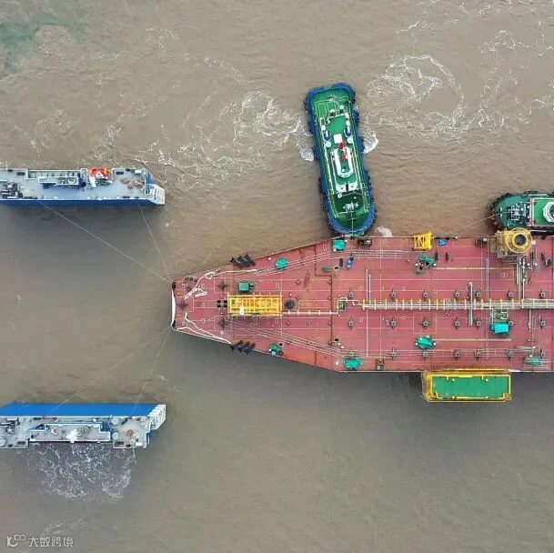此项目使用的半潜驳拖航船队长度达551米,在上海和南通区域均属首次。项目时间紧任务重,南通及上海海事局对项目全力支持,积极安排专家评审,为项目全过程保驾护航。中海广瀛按照两地海事部门的要求,编制完善的通航保障方案和安全措施,最终获得了两地海事、VTS部门的高度认可。