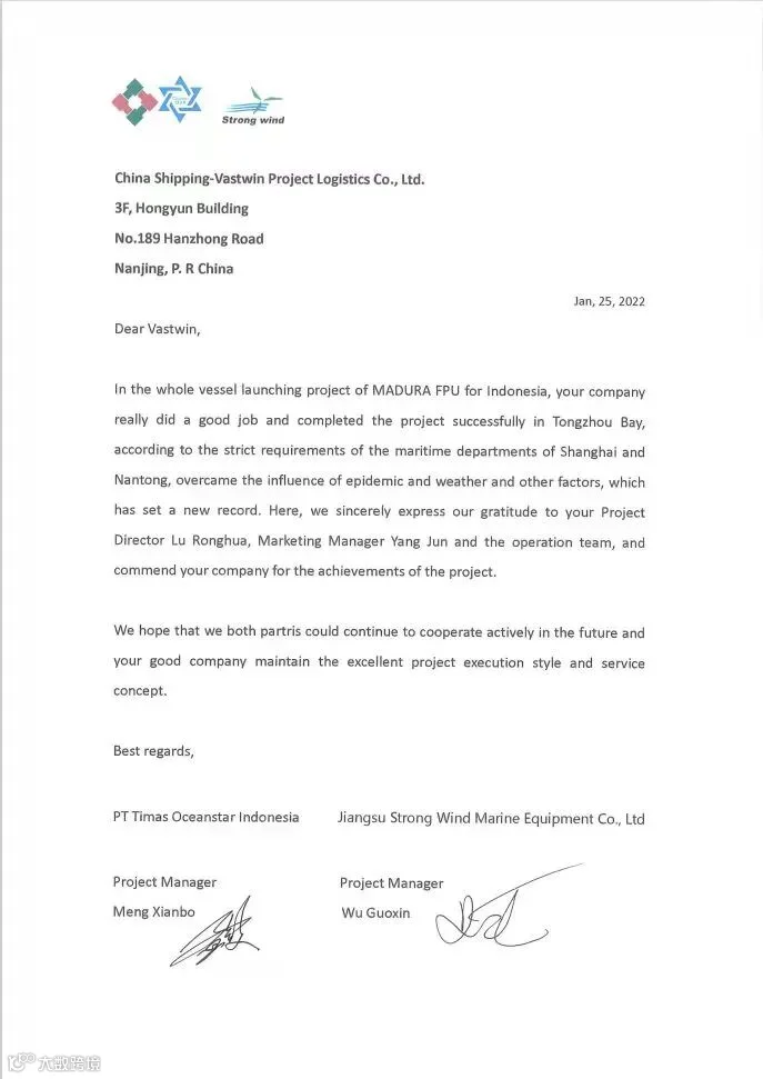 这是中国民营企业首次承接的高端海工项目,也是通州湾首例陆地建造整船下水项目,中海广瀛不负众望交上了令人满意的答卷,并获得了业主和客户的一致肯定,我们做到了一直希望的——成为您值得托付的伙伴!