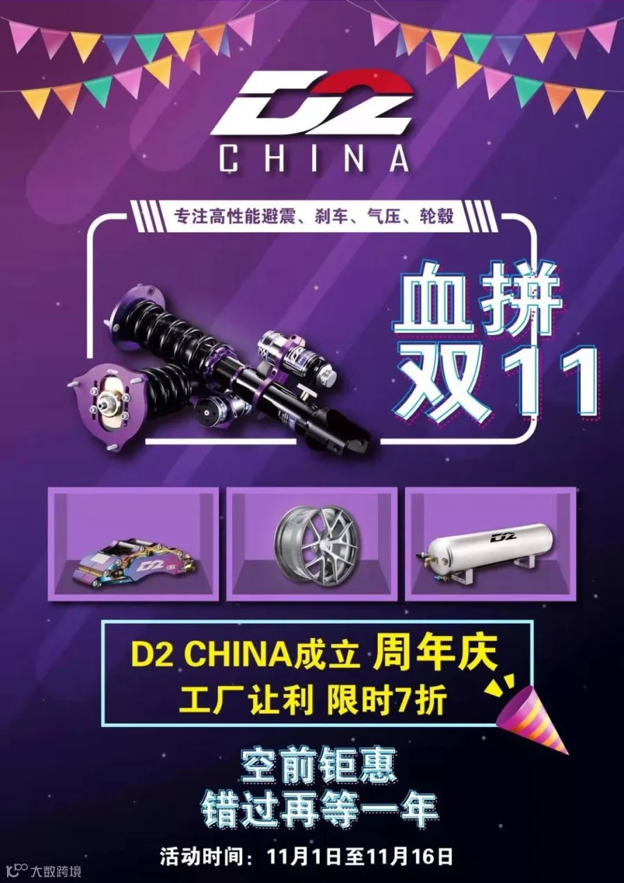 为了庆祝 D2 RACING核鑫汽配 成立一周年,这次有工厂支持让利 限时7折!空前钜惠!错过就要再等一年了!