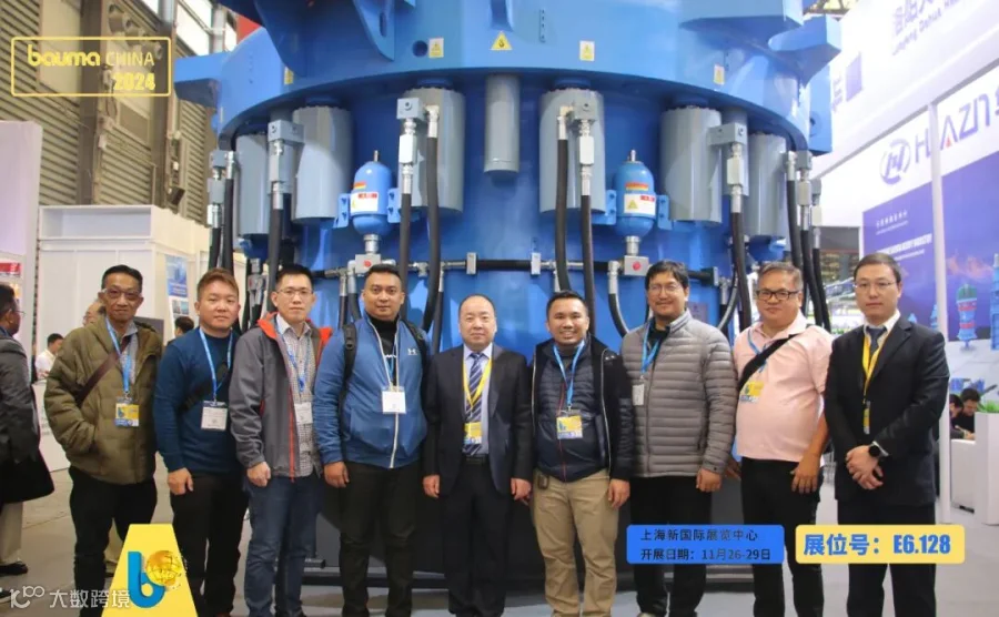 大华展位明星产品——超大型HPY1300多缸液压圆锥破碎机,凭借公司卓越的制造能力和工艺,牢牢抓住了客户们的目光,成为众人瞩目的“吸睛王”。它刚一亮相,便迅速围拢起大批感兴趣的客户,大家或驻足端详,或热烈讨论,眼神中满是认