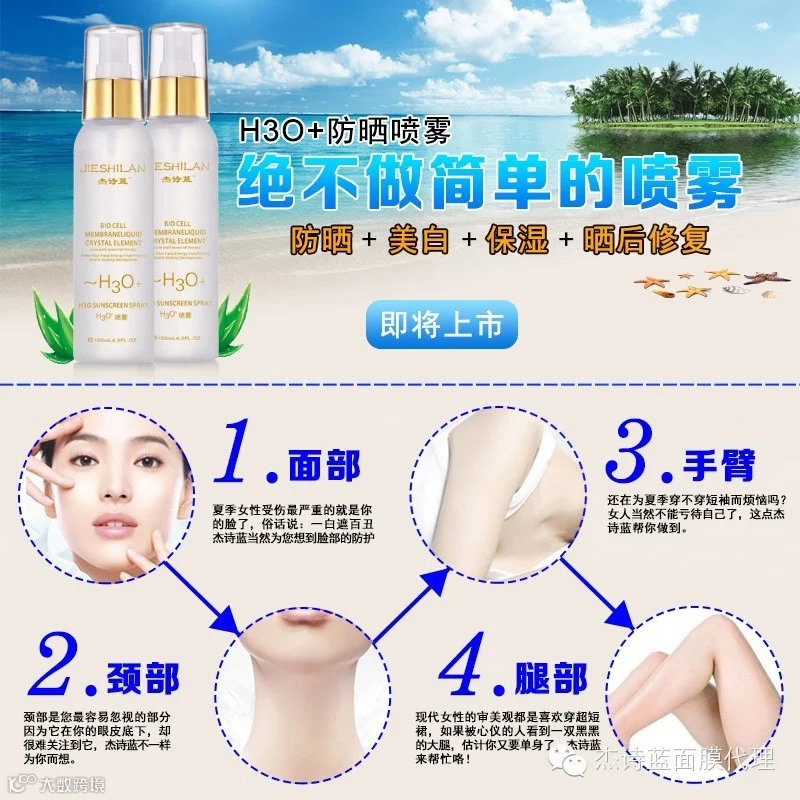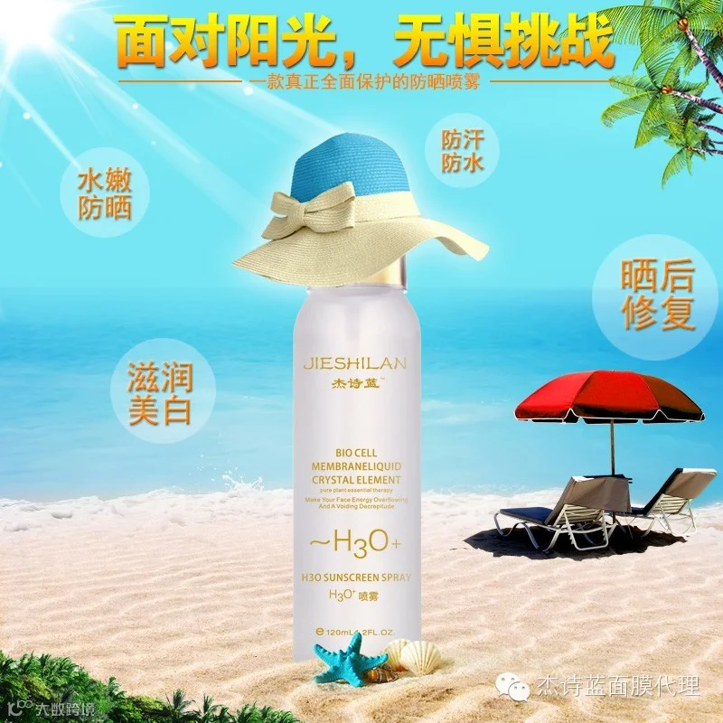 杰诗蓝H3O+防晒喷雾,夏日必备防晒护肤品,防晒、美白、保湿,还能晒后修复;