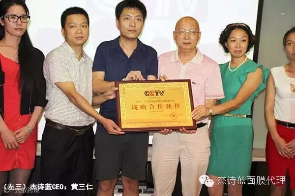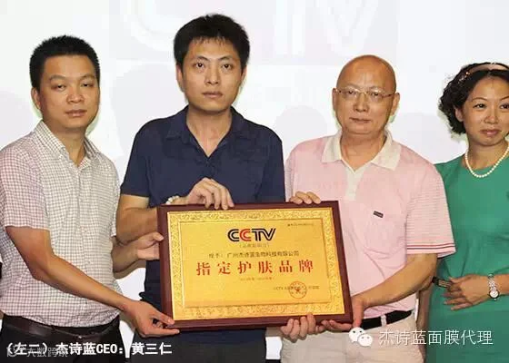 图为杰诗蓝董事长黄三仁先生荣获CCTV《品牌影响力》指定护肤品牌官方合影