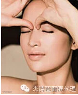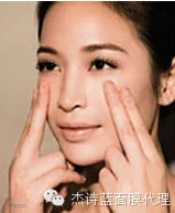 无名指取黄豆大小的眼霜在眼周围均匀涂上抗衰老眼霜,逆时针方向轻轻打圈按摩。再用中指和无名指按在双眼两侧,慢慢推揉眼侧皮肤,一定要轻柔以另一只手的无名指打圈按摩。