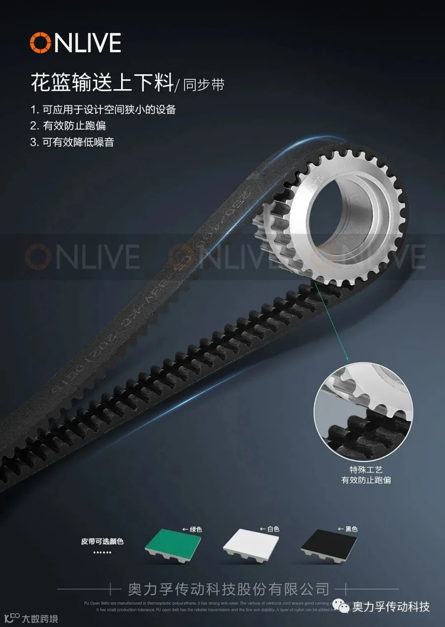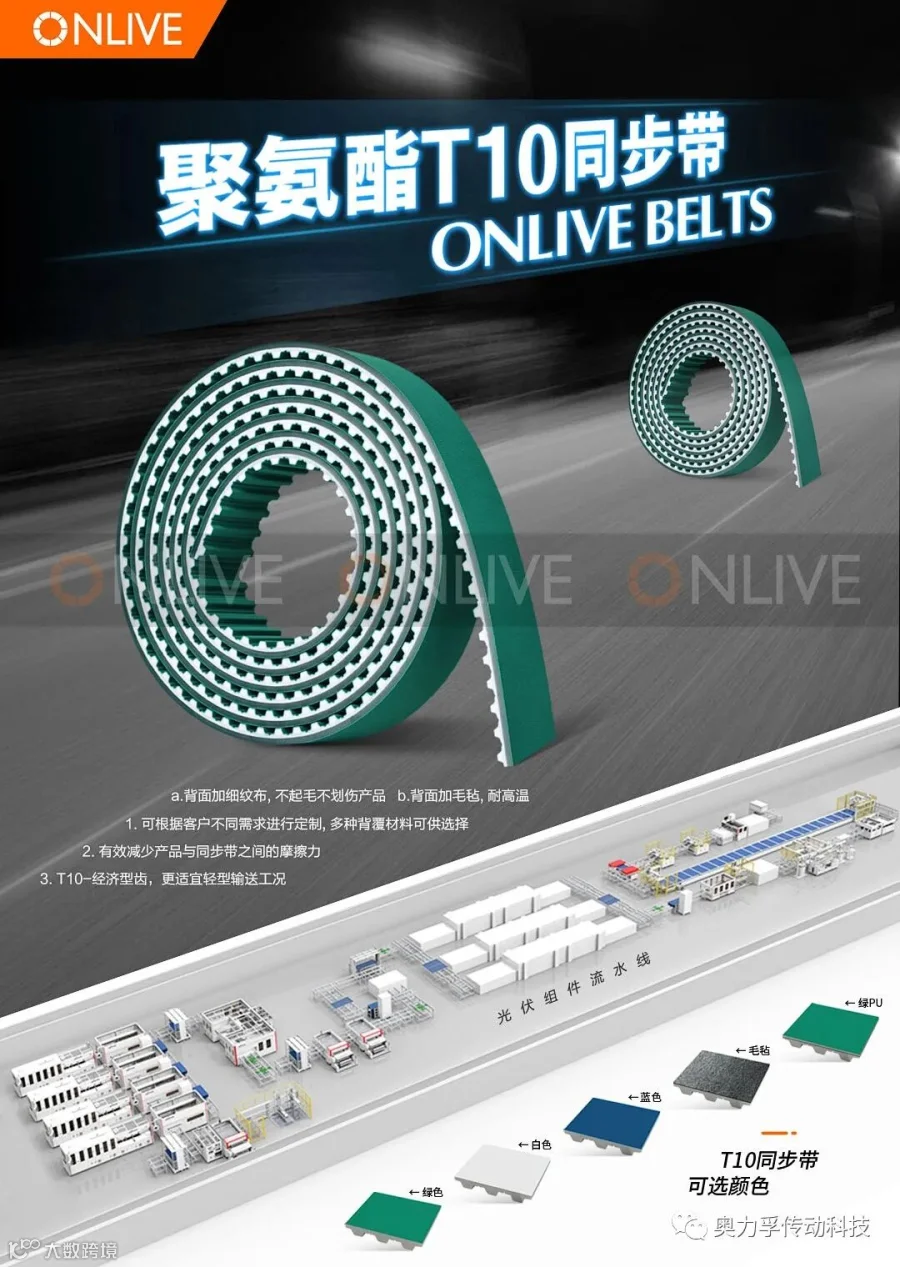 奥力孚传动科技股份有限公司于此次展会中展出明星产品光伏组件流水线传动元件及花篮上下料传输元件——(同步带及配套带轮)。