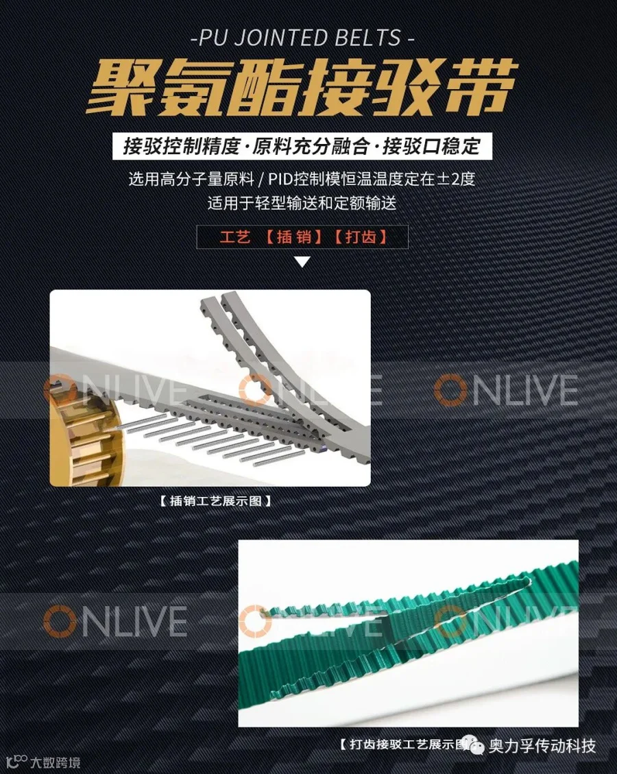 涵盖——聚氨酯开口带、聚氨酯接驳带、聚氨酯无缝带、聚氨酯特殊加工、盖特鲁环带、马赫带轮、聚氨酯活络带、圆带、输送带等。