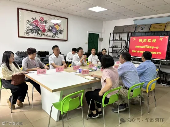 2024年10月22日,贵州省安顺市政协主席张锦,市政协副主席、贵州航空产业城指挥部杨平、市政协秘书长吴勇等一行,访问了广州华欣液压科技股份有限公司,受到公司总经理余倡合的热情接待。