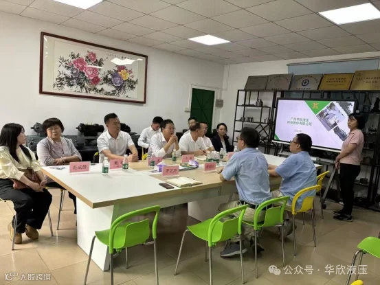 首先余倡合总经理代表华欣液压对张锦主席等一行的到访表示热烈欢迎,他向张主席详细介绍了华欣液压的发展历程、设计研发能力,目前业务分布,并就未来华欣液压的发展战略方向进行了详细介绍。