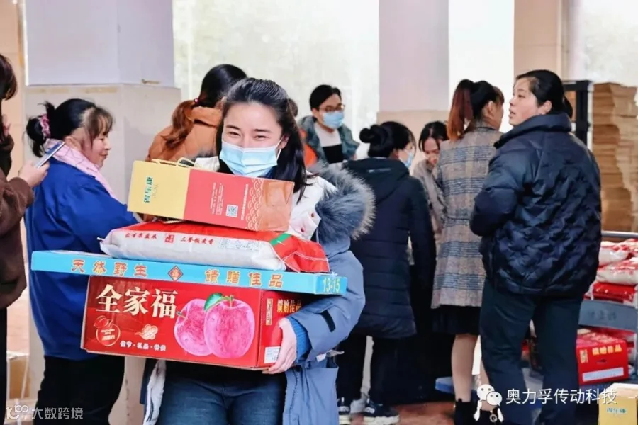 2021年2月2日下午17:00奥力孚为所有职工们发放年货,喜迎新年。