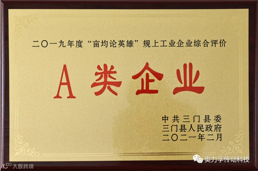 2月19日上午,全县经济工作会议暨“项目推进年、企业服务年”动员大会在县行政中心大会堂召开,奥力孚受邀其中并获得——2019年度三门县“亩均论英雄”规上工业企业综合评价A类企业。继获得2018年度三门县“亩均论英雄”规上工业企业综合评价A类企业后第二次获得此项荣誉,两次排名均为全县第六。