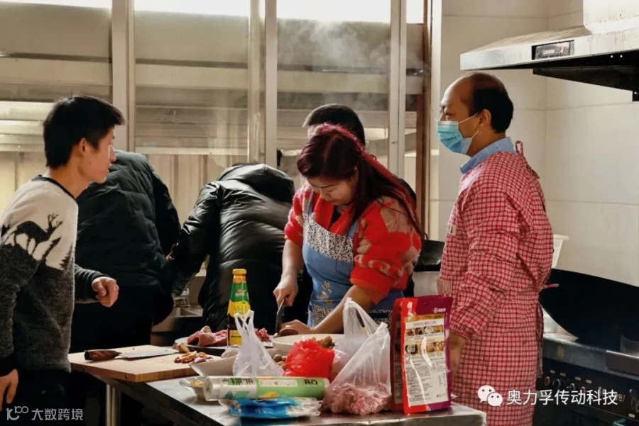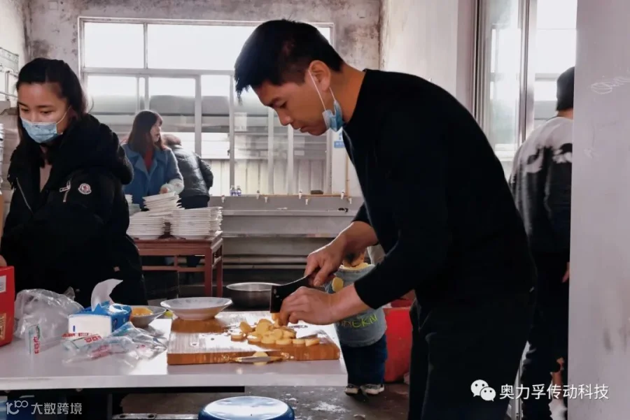 2021年2月9日年二八,奥力孚为就地过年的职工们于食堂准备了可口的年夜饭与大红包。今年是特殊的一年,为了响应国家的号召,也是为了不给家乡添麻烦,很多人没能回到自己的家乡过年,但是在奥力孚,这年味不会淡,这温情永长存。(下图为员工自行动手烧年夜饭的场景)