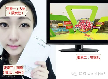 2.自备工具:电视、高清摄像器材(手机或相机)、杰诗蓝面膜(LOGO清晰可见);