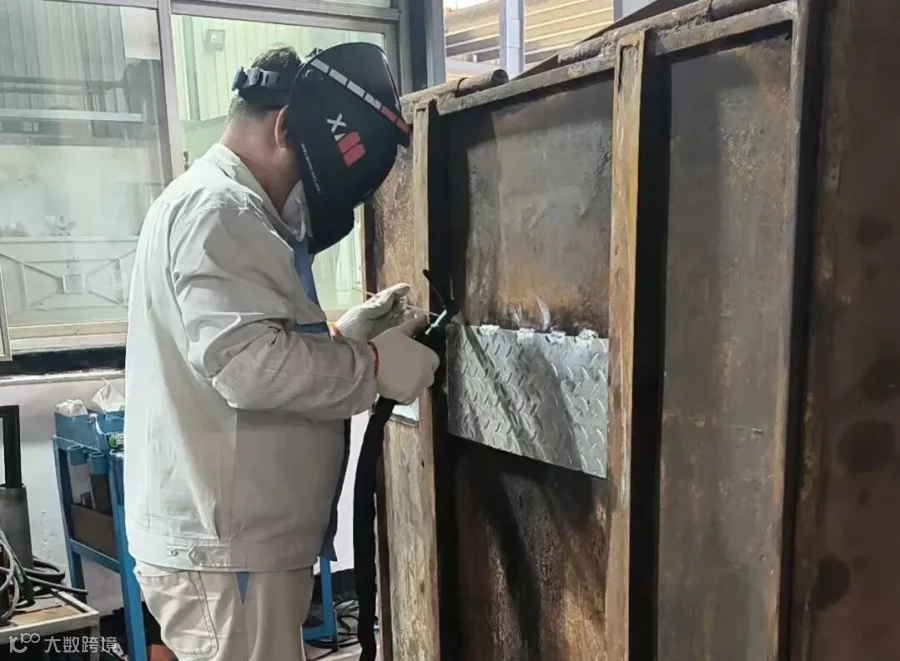 12月17日设备保全部郭锦成主动加班完善党建标牌防撞栏杆。