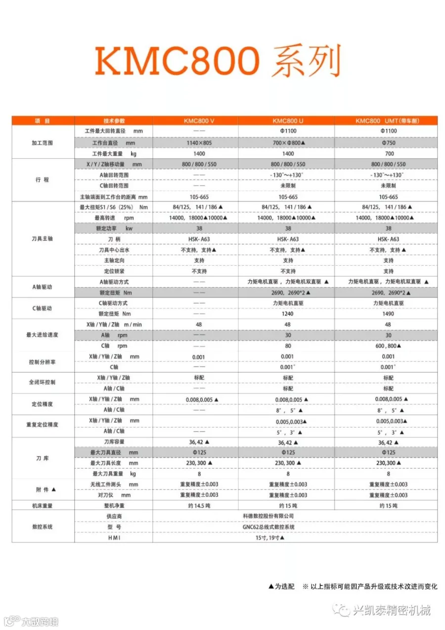 KMC800 UMT五轴铣车复合立式加工中心具有立式加工中心介绍里的全部特点,KMC800 UMT在KMC800 U通用五轴铣立式加工中心的基础上,增加车削功能,具有铣削和车削两种模式,车削模式下回转工作台的C轴具有最高1000 rpm的转速。这种铣车复合的特殊化设计,减少因传统工序多次装夹造成的时间损耗和精度损失,提高加工效率和加工精度。由于采用主轴移动模式,并且具备高达60m/min,1g加速度的性能指标,相比传统机型具有更高的材料去除率。