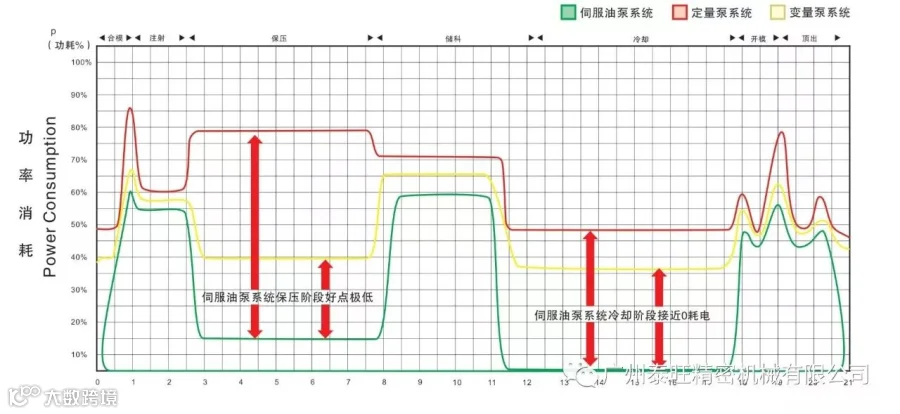 广州泰旺精密机械有限公司winmost液压伺服系统实现闭环控制,不但响应速度快、控制精度高,而且直接从制品要求出发来选择注塑机的动力配置,并将注塑成型的每一个步骤需要列出压力、流量和时间要求,以此计算出各个步骤实际所需的功率,再计算出整个周期的功率,从而确定所选的伺服动力配置。从各个步骤的细节上强化和明确了动力要求,使其不但满足制品的生产要求,而且刚好能够完全满足生产要求,从而从源头开始控制能源浪费,达到高效节能效果。