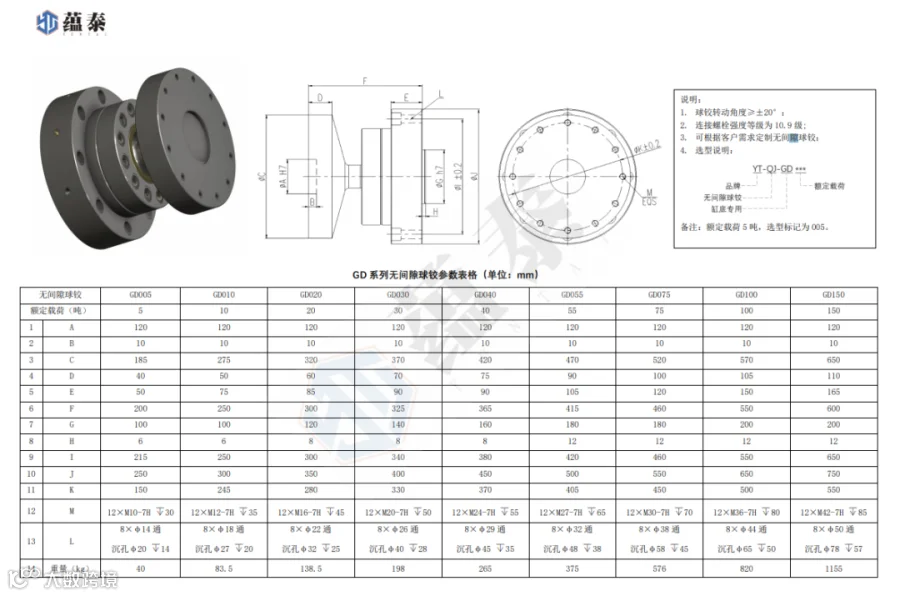 GD 系列无间隙球铰参数