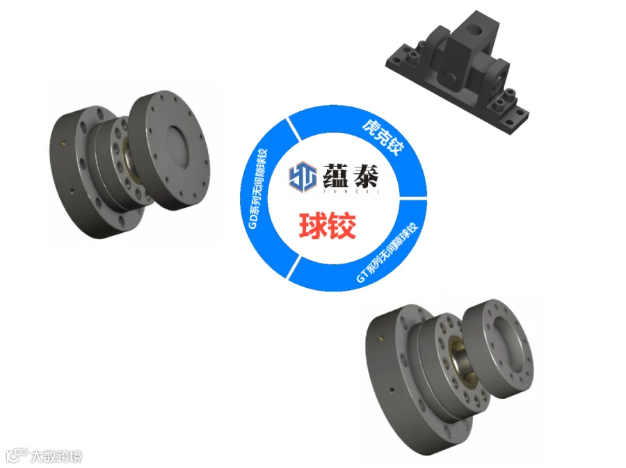 为了减小执行元件与被试件的振动冲击,提高可靠性,我司研发了高精度的球铰(无间隙球铰、虎克铰等产品)。