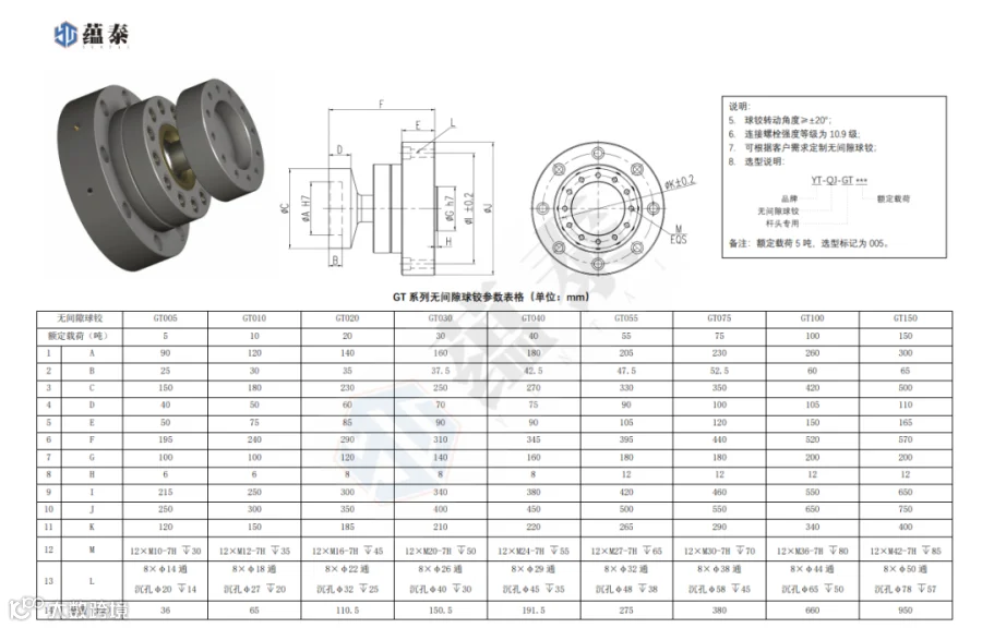 GT 系列无间隙球铰参数