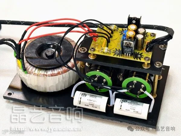 采用LT317 LT337组成的低内阻的三端稳压输出,滤波是德国蒙多福的四极平衡电解,退耦电解包含日本KAISEI快晴无极电解与标准系列,日本高速整流二极管,波兰MIFLEX的PP铜箔电容。