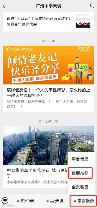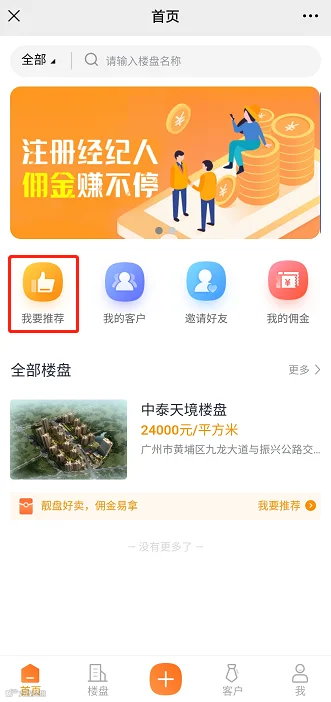 点击“带客报备”-“我要推荐”