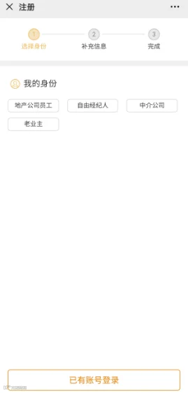 则点击顶部图片注册经纪人,选择身份。