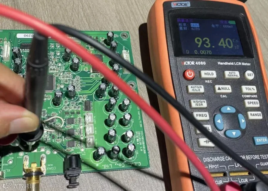 原机板上数字输出贴片电容,D值 很大,说明损耗极大。