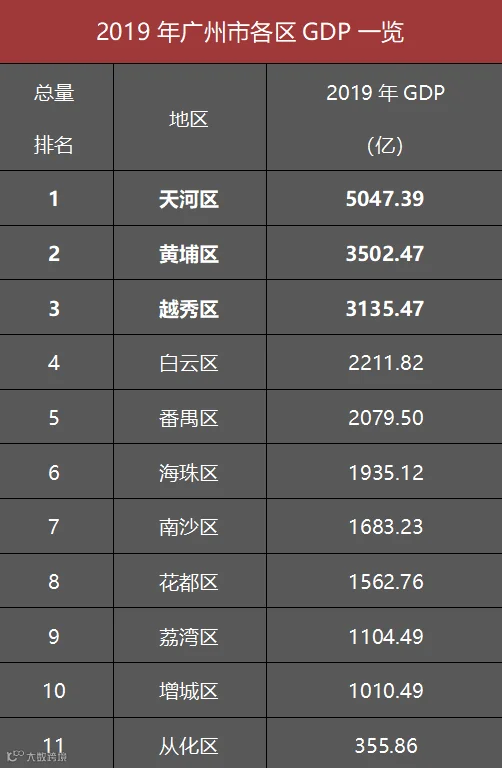 黄埔2017、2018、2019GDP连续三年仅此于天河区,居全市第二,而去年3502.47亿元的成绩与越秀差距进一步拉大!