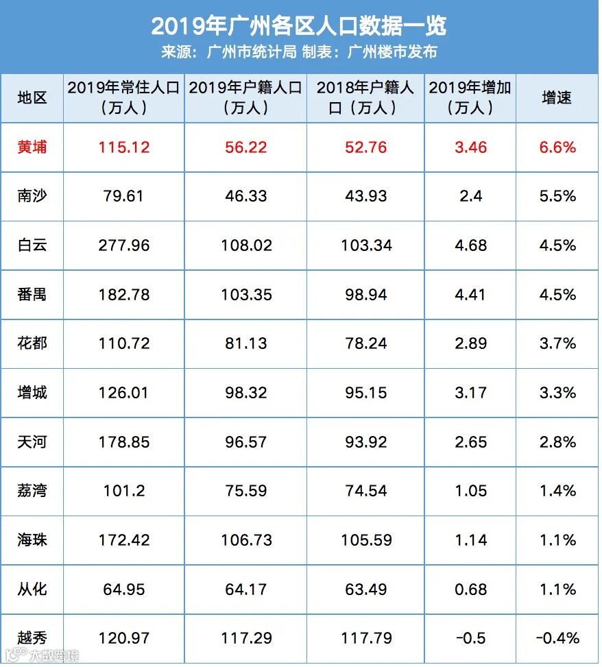据统计,2019年黄埔常住人口已增至115.12万人,户籍人口增长率更是位于全市第一。