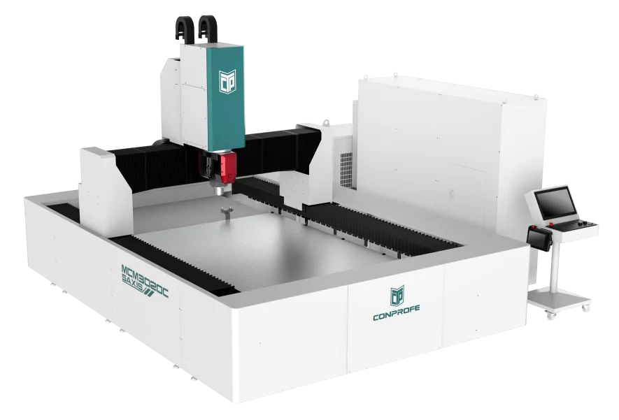 汇专复材超声切割龙门加工中心MCM3020C-5AXIS专为解决复合材料加工难题而研制,配置了汇专自主研发的超声切割技术、低温冷风冷却技术,最快移动速度60m/min,切割预浸料单刀最大切割深度≥10mm,可有效改善工件切割表面质量,提高刀具寿命,提升加工效率;该加工中心不仅在技术上追求卓越,更在空间布局上不断优化,在保证优异性能的同时实现了轻量化设计,整机约12吨,大大提升设备的机动性和场地适用性。