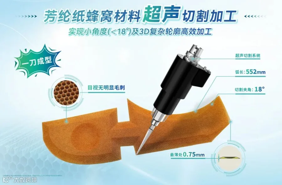 在芳纶纸蜂窝飞机复材特征提取综合测试件切割加工中,传统方案无法实现小角度切割及 3D 复杂轮廓高效加工,加工过程中工件接触面易受挤压,造成表面变形、撕裂及塌陷等问题,而且毛刺严重且粉尘较多。