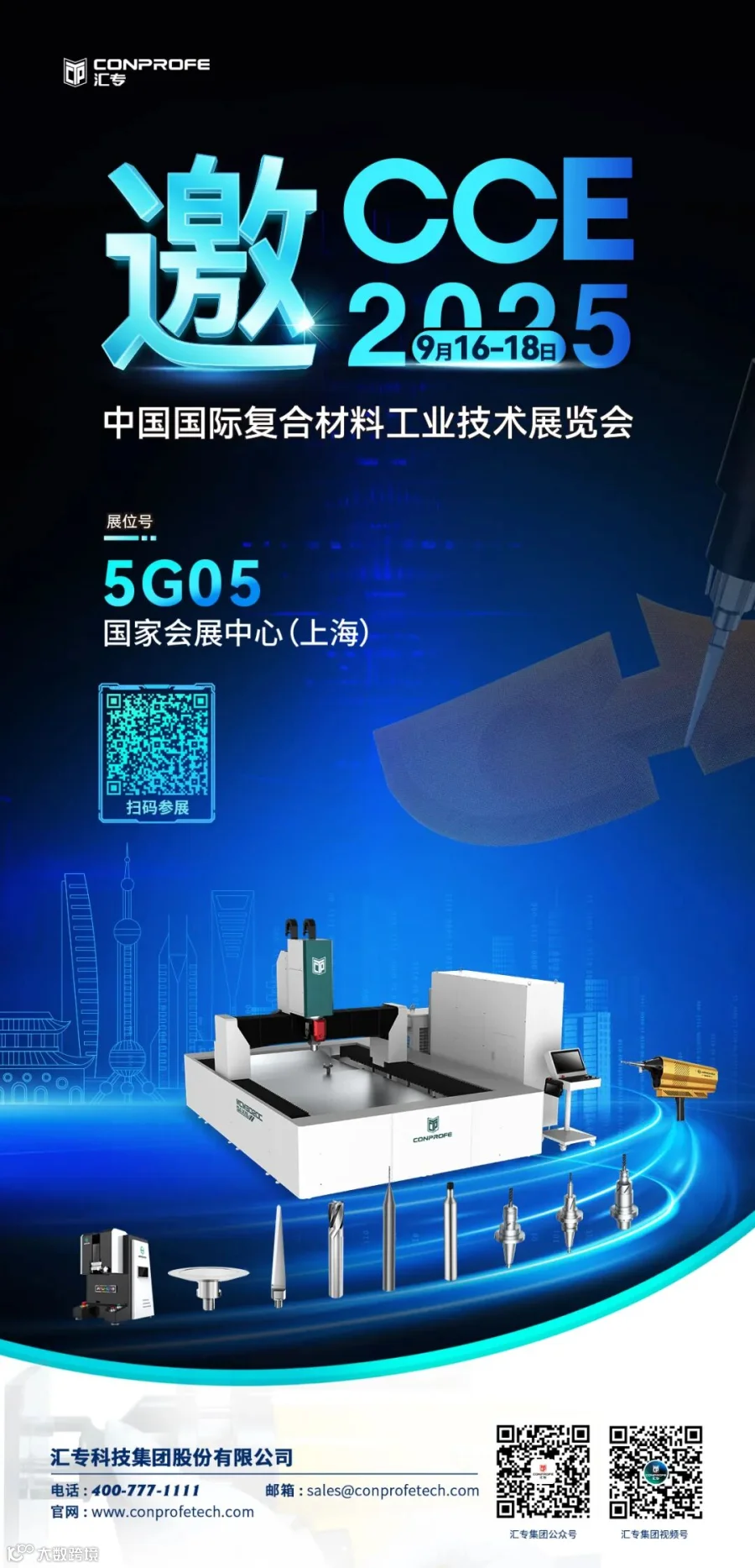 9月16日,第二十八届中国国际复合材料工业技术展览会在国家会展中心(上海)拉开帷幕。汇专亮相5.1馆5G05展位,重磅推出复材超声切割龙门加工中心MCM3020C-5AXIS,并带来复合材料超声绿色加工解决方案,助力航空航天等高端制造客户解决复材加工瓶颈。