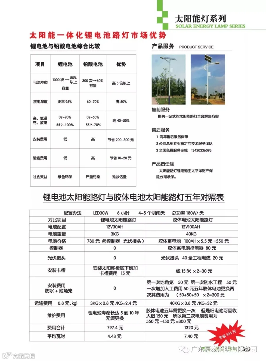 说明:因太阳能资源的地区差异,太阳能照明系统的具体配置应根据用户需求和安装地点的太阳辐射量而设计,太阳能路灯和普通路灯经济对比,单盏太阳能路灯和但盏普通路灯相比,太阳能路灯的价格远远超过普通路灯,但500盏普通路灯和500盏太阳能路灯相比,其实前期的投资费用是差不多的。