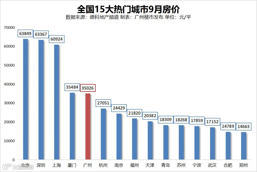 四大一线城市中,北上深已破了6万元/平,而广州竟然比厦门都低,排全国第五。