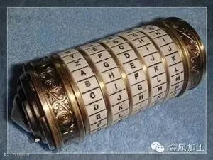 要打开密码筒,必须解开一个5位数的密码,密码筒上有5个转盘,每个转盘上都有26个字母,可能作为密码的排列组合多达11881376种。