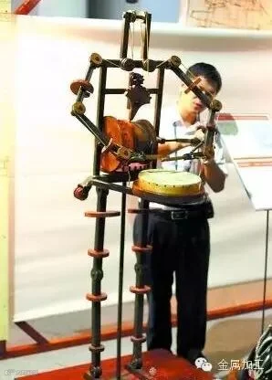 达·芬奇赋予了这个机器人木头、皮革和金属的外壳,而如何让机器人动起来,才是让达·芬奇大伤脑筋的。他想到了用下部的齿轮作为驱动装置,由此通过两个机械杆的齿轮再与胸部的一个圆盘齿轮咬合,机器人的胳膊就可以挥舞,可以坐或者站立。更绝的是,再通过一个传动杆与头部相连,头部就可以转动甚至开合下颌。而一旦配备了自动鼓装置后,这个机器人甚至还可以发出声音。
