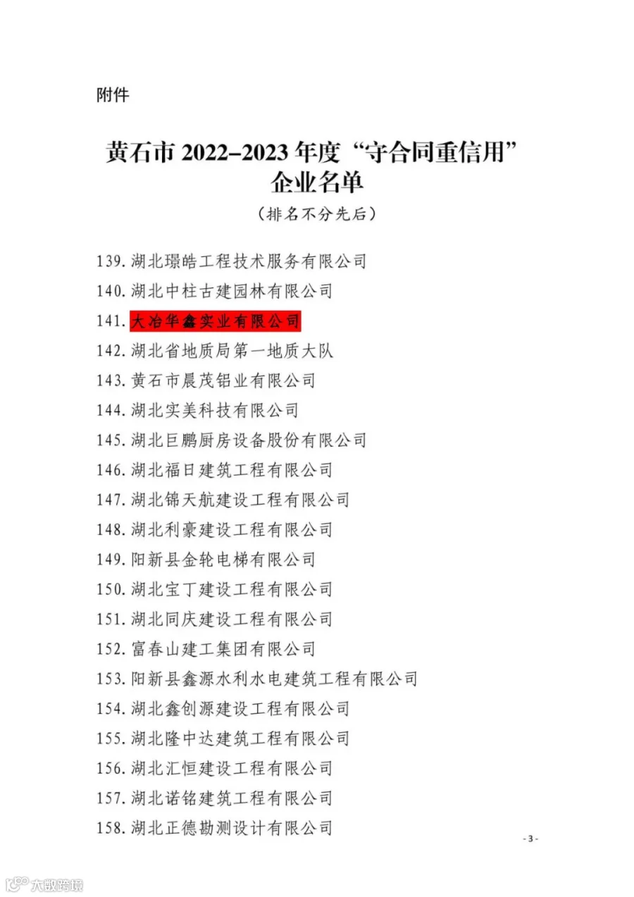 在促进企业诚信守法经营、构建健康有序市场环境的浪潮中,金骏安集团大冶华鑫实业有限公司凭借其卓越的合同信用管理能力和持续的诚信经营实践,荣登黄石市2022-2023年度“守合同重信用”企业榜单,展现了公司在行业内的良好形象和高度责任感。