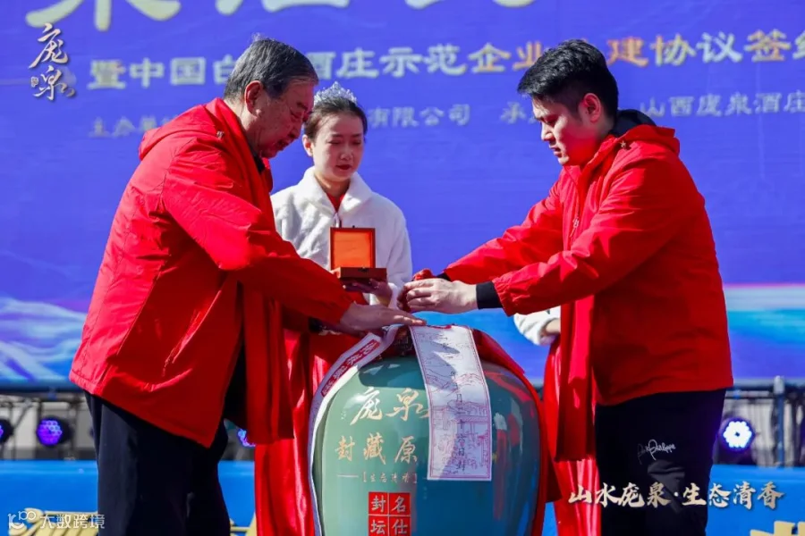 中国酒业协会理事长宋书玉,中清酒业酿造技艺发展中心常务副理事长赵严虎,中清酒业酿造技艺发展中心秘书长、山西省酿酒工业协会会长杨建峰,中国酒业协会副秘书长、酒庄分会秘书长杜小威,山西省酒业商会会长张春生,山西省酿酒工业协会常务副会长兼秘书长樊文毅,庞泉酒业集团董事长曹立华,华鑫集团总经理曹刚,庞泉酒业集团执行董事、山西庞泉酒庄有限公司总经理苗小岗,庞泉酒业集团总裁刘琦,庞泉酒业集团副总裁、庞泉(山西)酒业有限公司总经理郭亮刚等出席了庞泉酒封坛大典,并共同为庞泉酒的封坛贴封条盖印章。