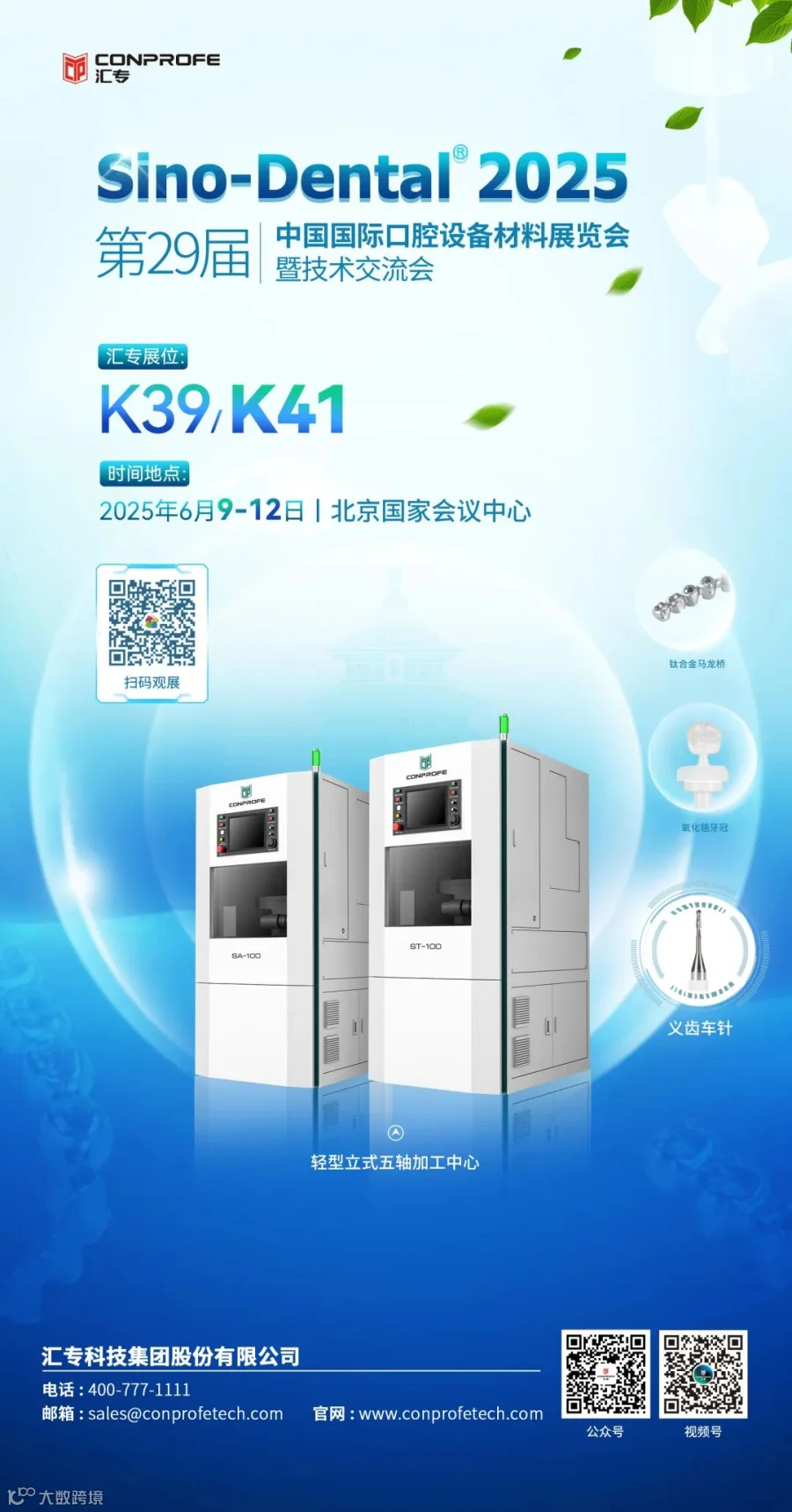 作为亚太地区颇具权威性和影响力的口腔专业盛会,第29届中国国际口腔设备材料展览会暨技术交流会即将拉开帷幕。汇专将携全新升级的工业级高性能义齿机——轻型立式五轴加工中心系列,以及口腔医疗器械超声绿色加工创新方案参加此次展会,敬邀您届时莅临参观指导!