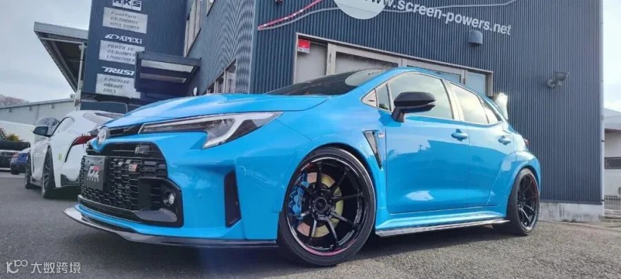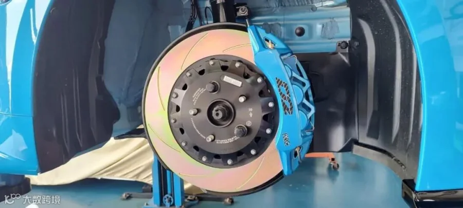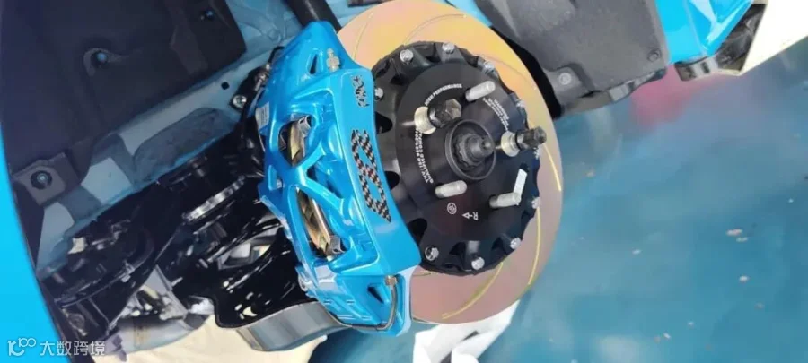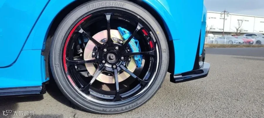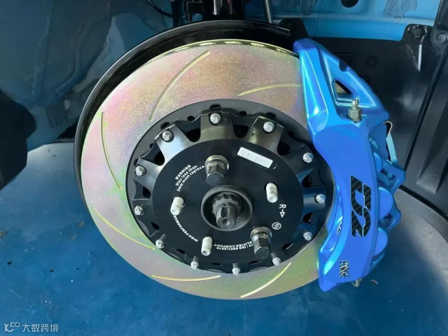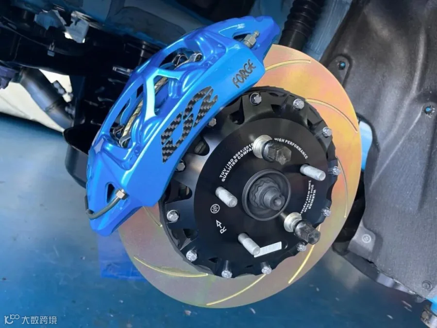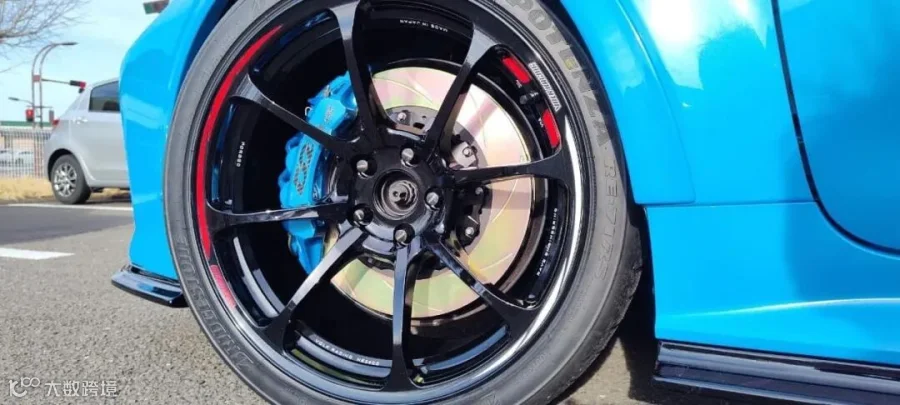 ●这台 丰田GR卡罗拉 安装的是D2新款运动空心卡钳,材质由铝制成;通过整体锻造工艺形成主体,以达到排列晶粒结构的效果。然后应用CNC 3D加工技术雕刻出镂空设计。该产品的特点是减轻重量,加快散热,有效降低刹车温度,增强制动力。通常出现在高级 GT 赛车上。