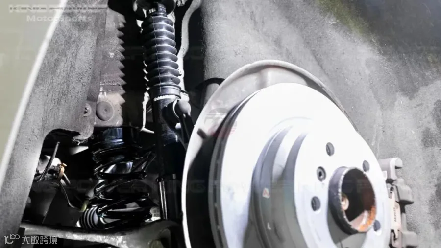 此车型的后避震器是非一体成型(弹簧和避震器是分开的),上下都有铁套。